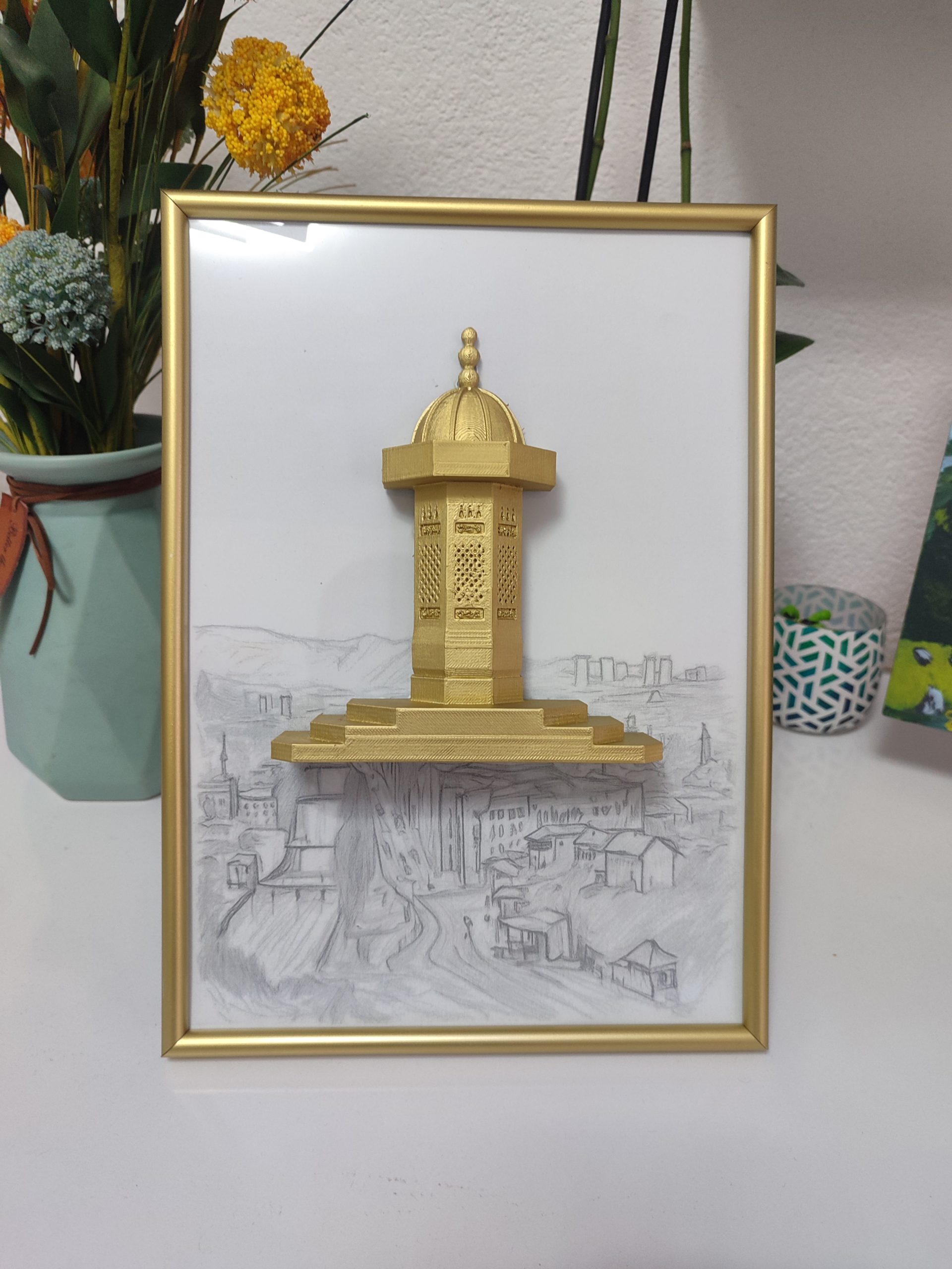 Elegantna 3D slika “Sebilj” u luksuznom zlatnom okviru, dimenzija A4 (21 × 29,7 cm). Prikaz poznatog sarajevskog simbola izrađen je modernom 3D tehnologijom, s naglaskom na detalje i dubinu. Zlatni okvir daje sofisticiran i upečatljiv izgled, čineći sliku savršenim izborom za dekoraciju doma, ureda ili kao poklon s tradicionalnom notom.